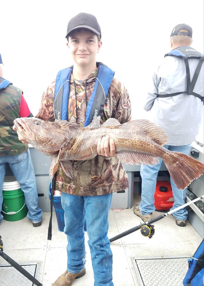 Families with children have chartered several trips over the last week, and it has been a blast watching youngsters catch their limits. I am asked a lot if kids will get bored on our charter trips, and if that is ever a concern for parents you can be assured that kids love our deep-water lingcod trips. It’s very active with lots of action and lots of fish being caught. If you are looking for some family fun and have kids, please give me a call and we will setup a great trip for you. Check out the pictures below: